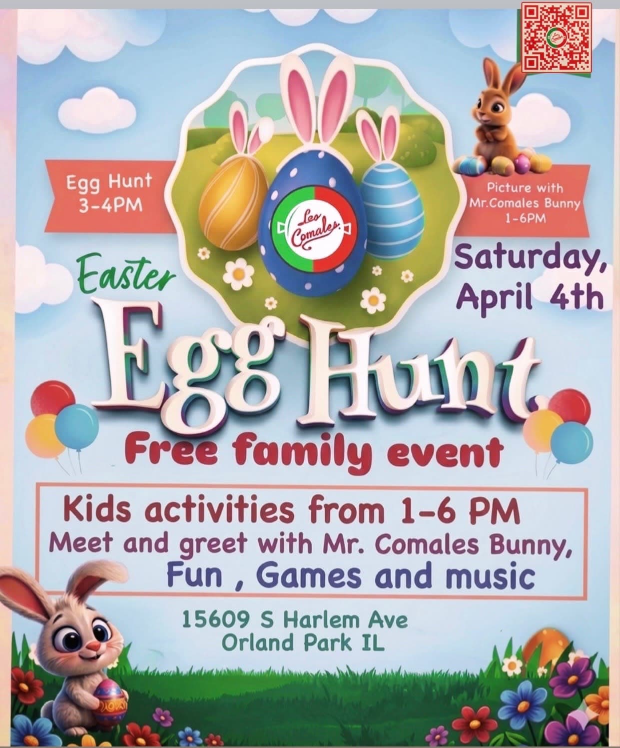 Come bring your kids to Taqueria Los Comales for an Easter Egg Hunt, along with photo opportunities with Mr. Comales the Bunny! Taqueria Los Comales