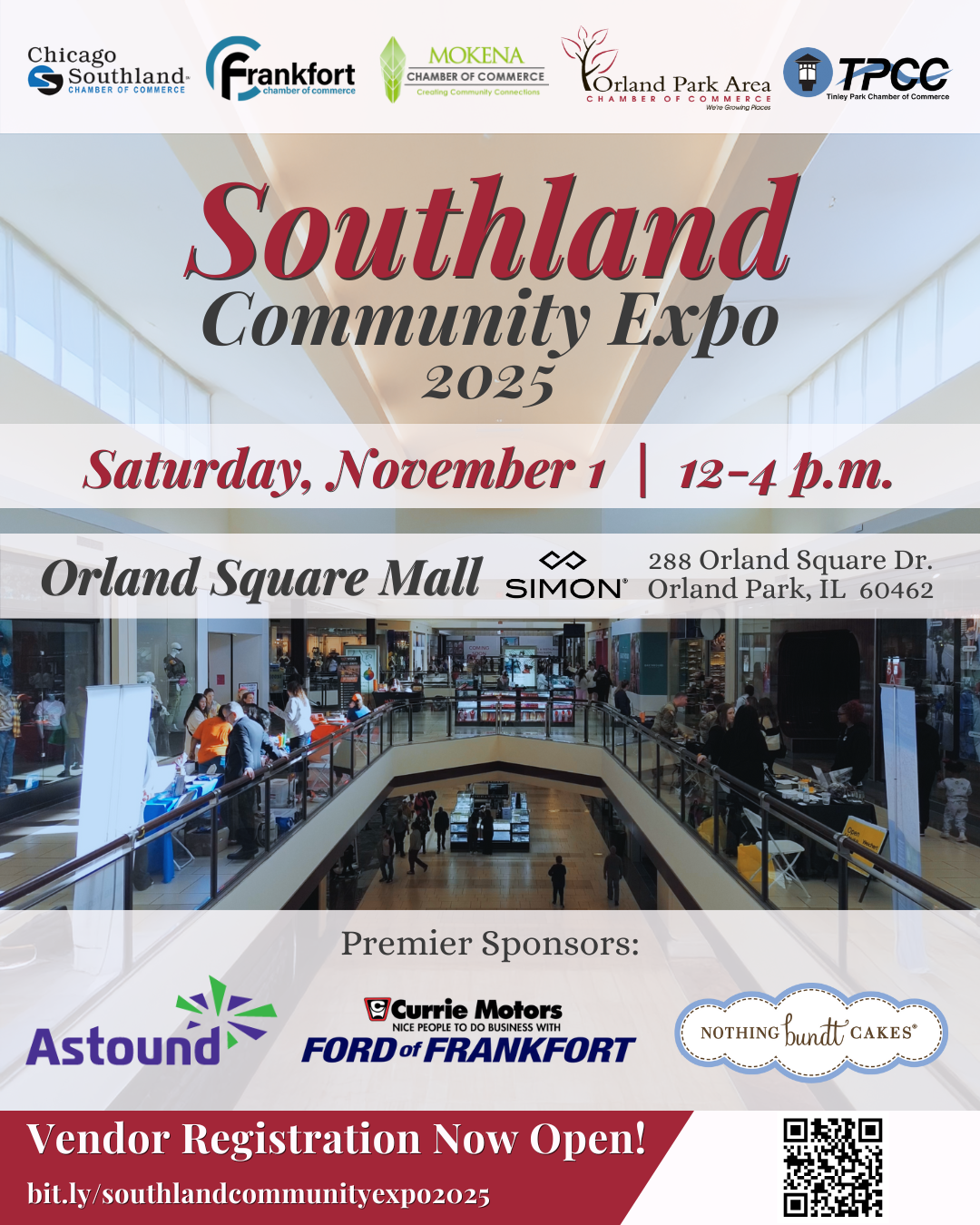 Southland Community Expo 2025 Orland Square Mall In partnership with Chicago Southland, Frankfort, Mokena and Tinley Park Chambers of Commerce.